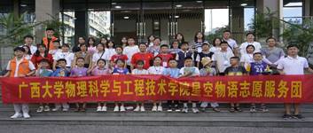 我院星空物语志愿服务团成立于2020年,在学院党委的领导下,依托学院天象馆和专业优势,一方面旨在鼓励学生拓宽视野,树立远大理想,坚定“四个自信”,把立德树人根本任务融入社会实践中去,另一方面积极践行志愿精神,彰显青年使命担当。该志愿团队获得365英国“优秀志愿服务项目”。