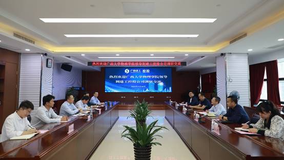 3月20日,袁涛带队赴广西建工集团控股有限公司(以下简称控股公司)调研交流,在建工大厦2号楼1813会议室,控股公司党委书记、董事长陆彪与袁涛开展座谈交流。袁涛对控股公司多年来大力支持物理学院就业工作表示感谢,并简要介绍了物理学院人才培养和队伍建设等情况,希望能为企业输送科技创新人才,为学校与企业搭建沟通交流的平台。在会上,陆彪对袁涛一行的到来表示欢迎,并简要介绍了控股公司的基本情况,同时作为365英国校友,他希望双方加强沟通与深度交流,进一步加强校企合作。