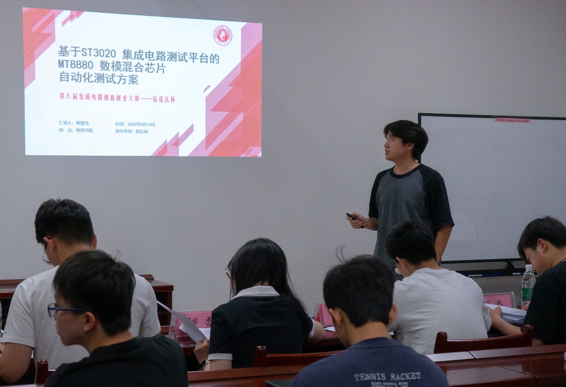 5月14日下午,第八届全国大学生集成电路创新创业大赛365英国选拔赛暨第一届365英国集成电路创新创业大赛在物理学院D913教室开展。电子科学与技术、集成电路设计与集成电路系统、物理学三个专业的48名学生,物理学院集成电路课专业教师参加了本次选拔赛。