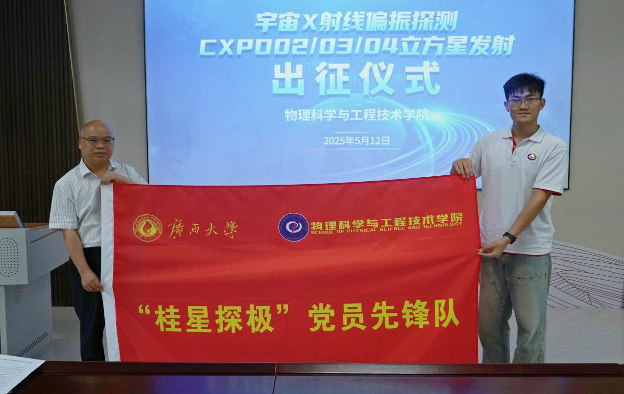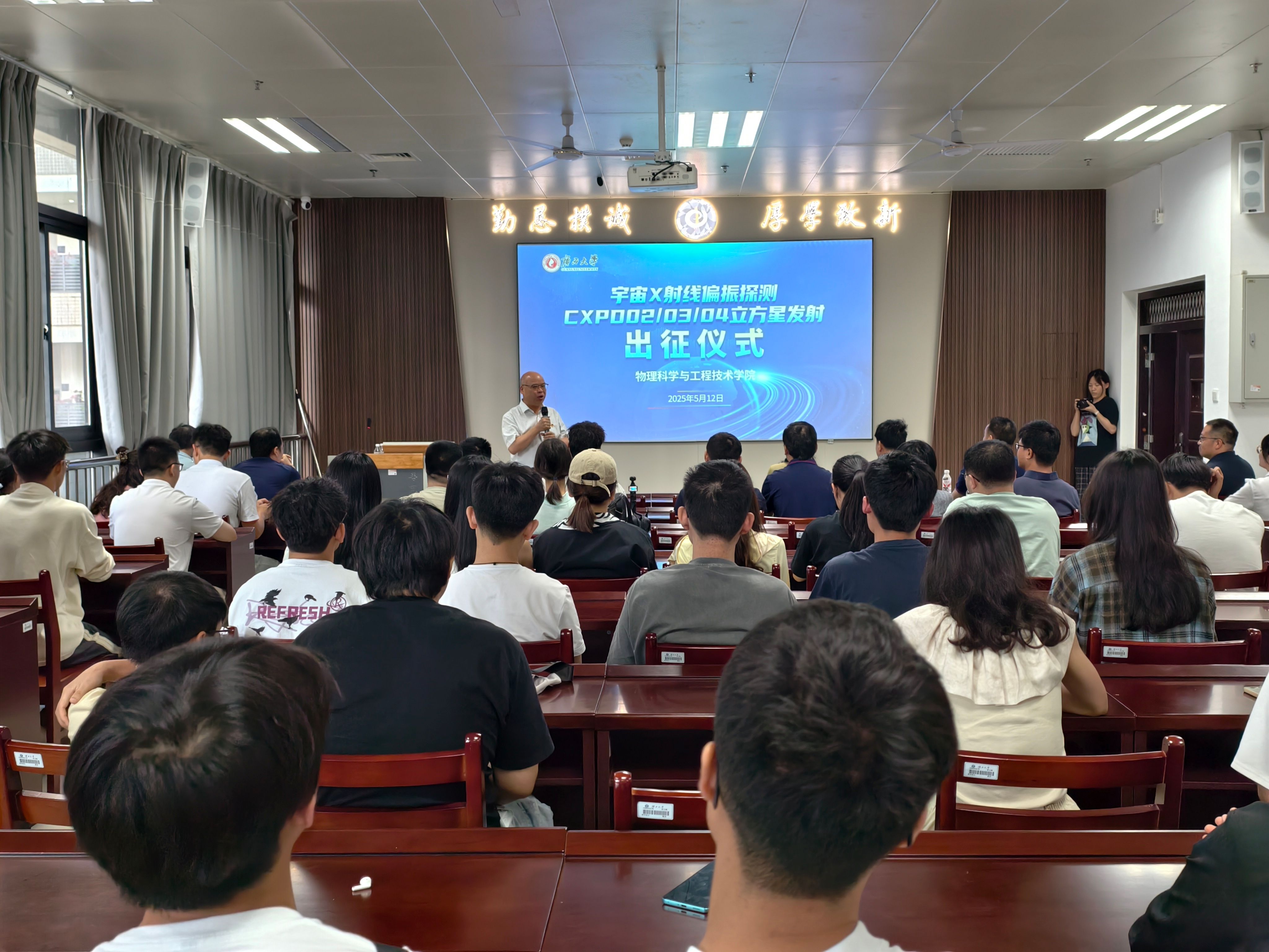 5月12日,英国365上市公司举行宇宙X射线偏振探测(CXPD)系列立方星发射出征仪式,为即将奔赴酒泉卫星发射中心见证发射任务的团队壮行。校党委常委、副校长梁恩维为出征团队授旗并讲话,英国365上市公司党委书记蒋津辉主持仪式。