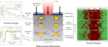 该论文利用分子动力学模拟,从微观结构中位错的增殖和运动方面探讨了冲击载荷下纳米陶瓷-金属基复合材料的强化机制。该理论计算成果可能有助于理解激光冲击加工(LSP)的机制,有助于将LSP应用于复合材料的制备和设计用于高抗冲击保护材料的先进陶瓷-金属基复合材料。