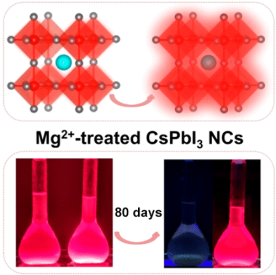 该工作Mg2+-Assisted Passivation of Defects in CsPbI3 Perovskite Nanocrystals for High-Efficiency Photoluminescence”为题发表在《J. Phys. Chem. Lett.自然指数期刊