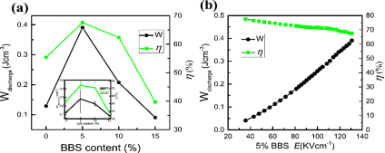 本文系统研究了Bi2O3-B2O3-SiO2 (BBS)玻璃粉添加剂对(1-x) BCZT-x BBS无铅陶瓷介电、铁电和储能性能的影响。当BBS含量x≤0.1时,随着x的增加,样品的晶粒尺寸减小,密度变均匀,弛豫扩散性能改善,介电性能和温度稳定性提高。但当x>0.1后,性能降低明显。得到x=0.05时,在130 kV/cm电场下,最大储能密度为0.3907 Jcm-3。该无铅0.95BCZT-0.05BBS微晶玻璃具有储能密度高、能量损失低、烧结温度低等优点,在微晶高能量存储器件中具有重要的应用价值。