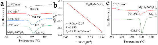 近日,我院新能源材料团队开展了镍钒双金属氧化物的制备及其对氢化镁储氢性能影响的研究,研究成果以"Facile synthesis of nickel-vanadium bimetallic oxide and its catalytic effects on the hydrogen storage properties of magnesium hydride"为题发表在《International Journal of Hydrogen Energy》期刊上。