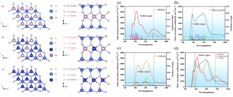 随着能源问题日益加剧,人类对绿色可持续能源的需求日益增加。太阳能作为绿色能源的典型代表,凭借其覆盖面大、持续时间长、发展潜力大等特点一直是科学界的研究前沿而提升太阳能的利用首要解决的问题就是提升材料的光吸收性能。2020年,二维单层材料MoSi2N4被成功制备(Science 2020, 369, 670–674,其众多优异的半导体特性和可能的大家族成员引起大量科研人员的关注。本文针对其光吸收特性,利用第一性原理Cr取代MoSi2N4中的Mo原子在可见光区内的激发态进行了计算。结果显示,Cr原子的单置换对最外层和亚外层的晶格结构没有显著影响,但对电子的积累起主要作用。发现二维MoSi2N4Mo0.5Cr0.5Si2N4 CrSi2N4 都具有有效的电子-空穴分离特性。当Cr原子取代MoSi2N4中的Mo原子时,紫外可见光谱发生红移Cr原子和Mo原子共存时,Cr原子和Mo原子之间的耦合可实现紫外可见光区光吸收性质的调控。这些结果为设计高吸收性能的新型二维材料提供了方向。