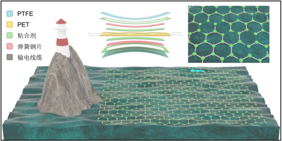 摩擦纳米发电机作为采集海洋蓝色能源的新兴技术,备受人们瞩目。成千上万的发电机单元漂浮于海面上,形成发电机阵列,随着海浪摆动而输出电能。然而一直以来,鲜有人去探讨发电机单元间如何连接和用何连接,电能如何高效传导。为此,我们提出了基于弹簧钢片的连接器,并赋予其三项功能:第一,机械限位作用,即对发电机单元的横向运动有所限制从而避免团聚;第二,屏蔽保护作用:需为输电导线提供架设空间并屏蔽海水离子对电能的干扰,也要保护输电导线免受海水腐蚀而破损;第三,自身也可采集波浪能发电。实验上,单个连接器单周期开路电压最大可达34V,转移电荷量25nC。文中还进行了一项水上试验,用实验证明了所述多效能连接器的可行性。这项工作为大规模的蓝色能量采集网络的搭建提供了一种可能的策略。