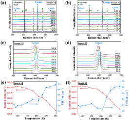 在高质量UV-LEDs的应用中,AlN薄膜的应力和光学性能对器件性能至关重要。目前,采用纳米图案化蓝宝石作为衬底的方法,可以有效降低晶格失配引起的应力和位错密度。本研究针对AlN薄膜在纳米图案化和平面蓝宝石衬底上的应力和光学特性随温度的变化情况进行了比较和分析,结果表明图案化衬底生长的AlN有更小的压应力,图案化产生的纳米孔洞为应力的释放提供了通道;从衬底界面到外延层表面应力由张应力转变为压应力。由于光在纳米孔洞中的受到散射、耦合和捕获等因素影响,光的透射率减弱。此外,图案化衬底形成的纳米孔洞通过释放内应力,提高晶格有序性,更低的缺陷表现为较小的Urbanch能量。同时,讨论了AlN薄膜随温度变化的禁带宽度和光学常数。该研究为预测热光效应和优化氮化铝基高功率器件提供了参考。